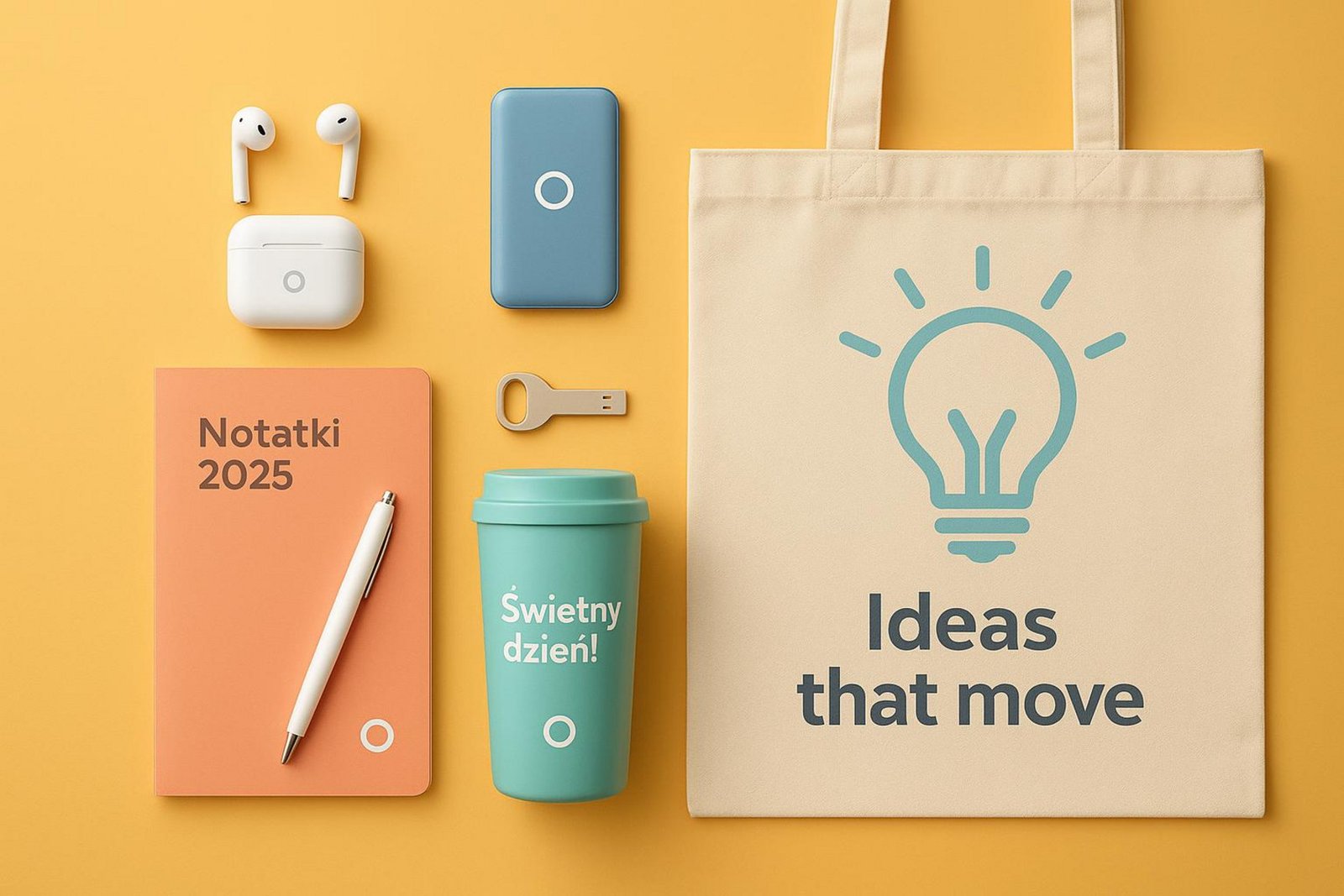 2. Gadżety biurowe z logo — notesy, długopisy, kalendarze