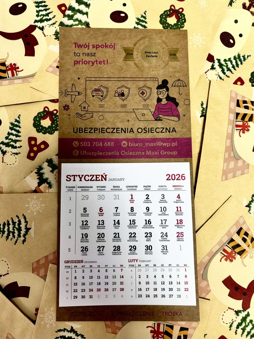 Super Firma kalendarze ekstra wykonanie szybko ,solidnie bardzo dobry kontakt z wykonawcą Polecam!!!!!!!!!