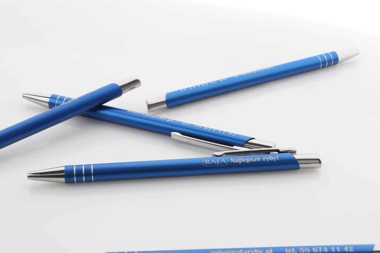 niebieskie długopisy z grawerem dwustronnym Rafa