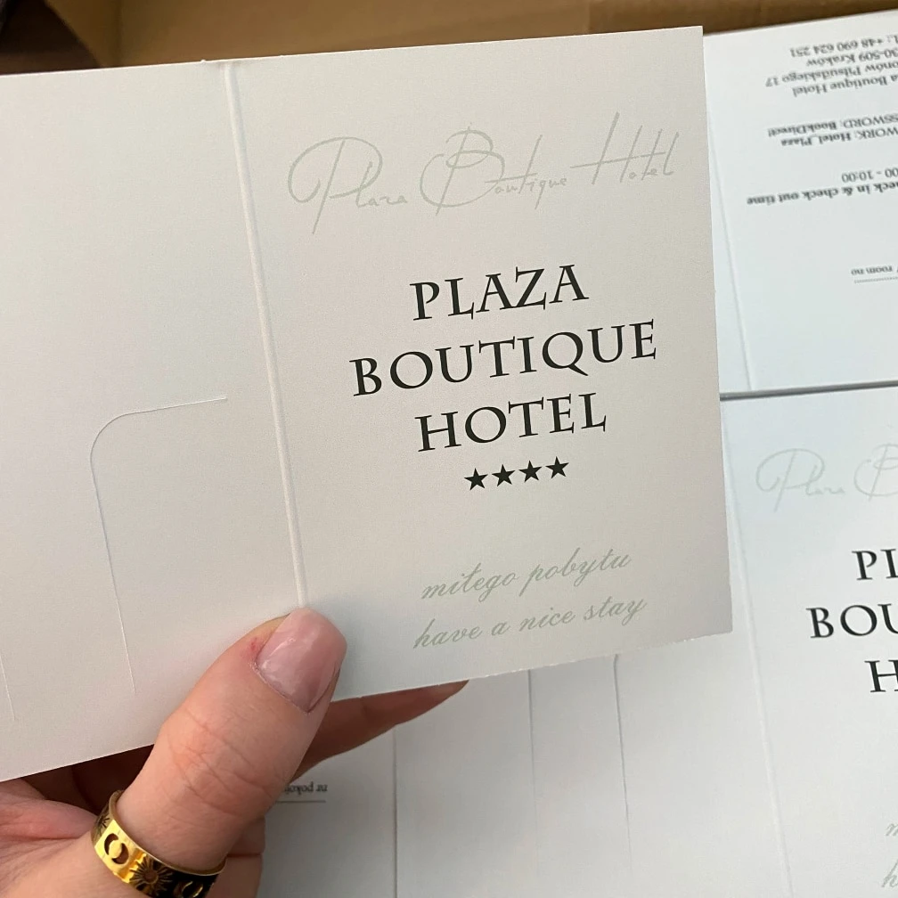 Etui na klucz z indywidualnym nadrukiem drukowane na papierze kredowym 350g – z chęcią stworzymy projekt dla Twojego hotelu. Dla nakładów od 2000 szt. etui wykonujemy dodatkowo z jednostronnym zabezpieczeniem folią.