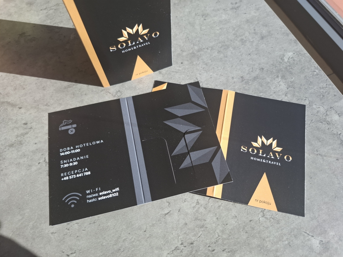 Etui na klucz z indywidualnym nadrukiem drukowane na papierze kredowym 350g – z chęcią stworzymy projekt dla Twojego hotelu. Dla nakładów od 2000 szt. etui wykonujemy dodatkowo z jednostronnym zabezpieczeniem folią.