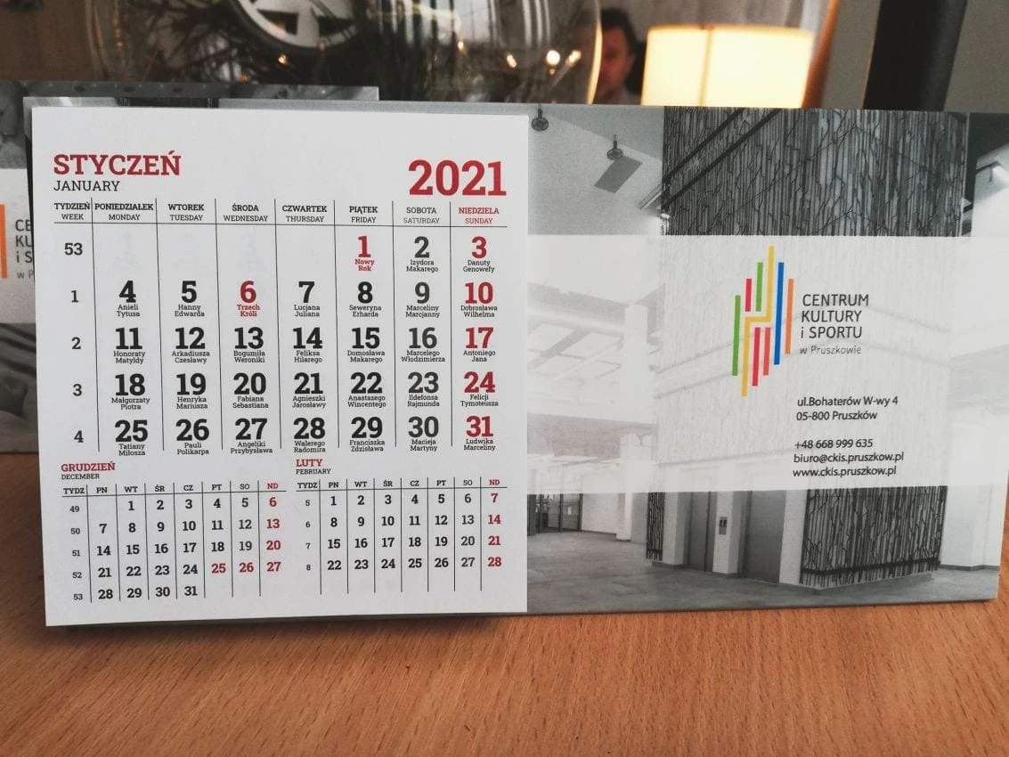 kalendarze biurkowe z logo Centrum Kultury i Sportu