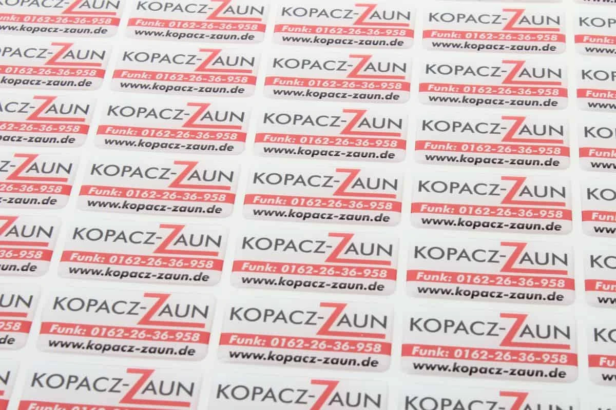 zdjęcie naklejek wypukłe z logo Kopacz-Zaun
