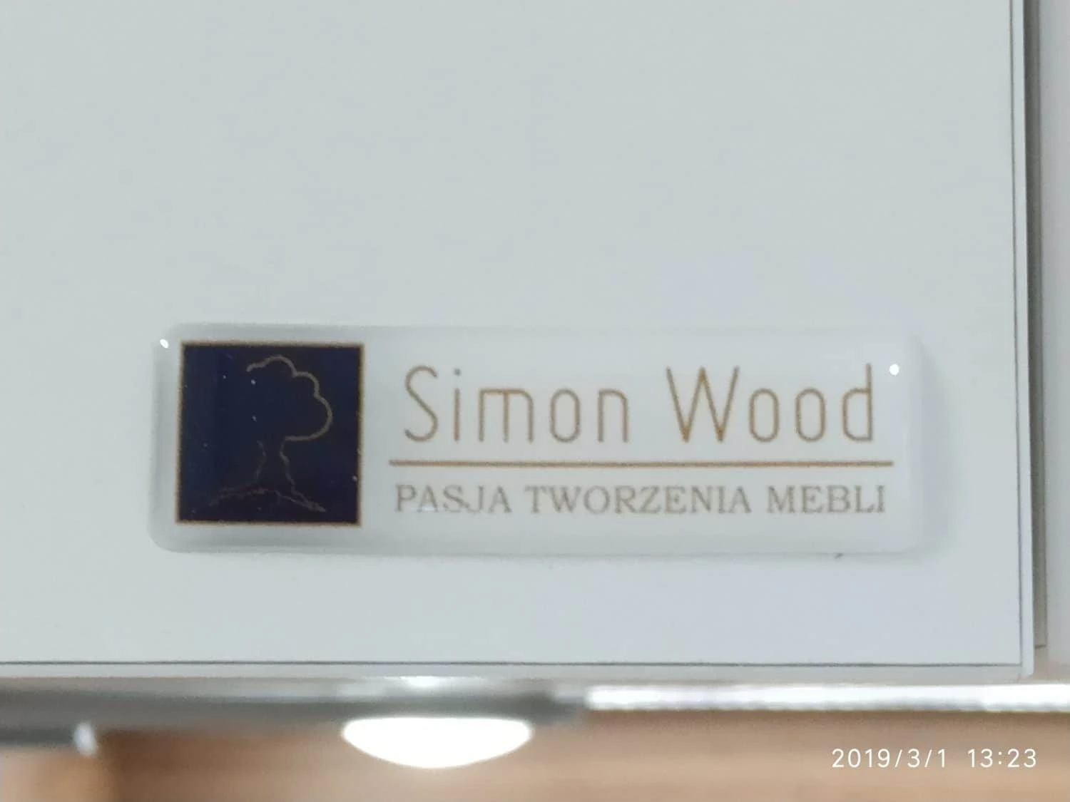 naklejki wypukłe na meblach z logo Simon Wood