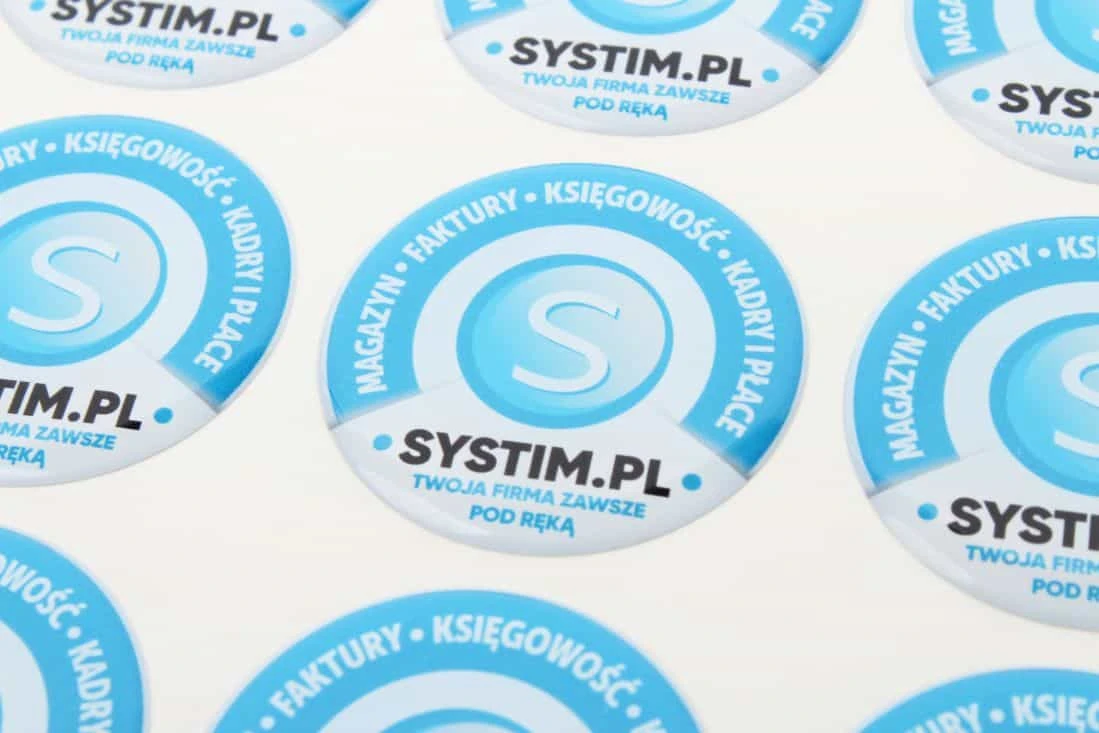 realizacja naklejek wypukłe okrągłe z logo Systim.pl