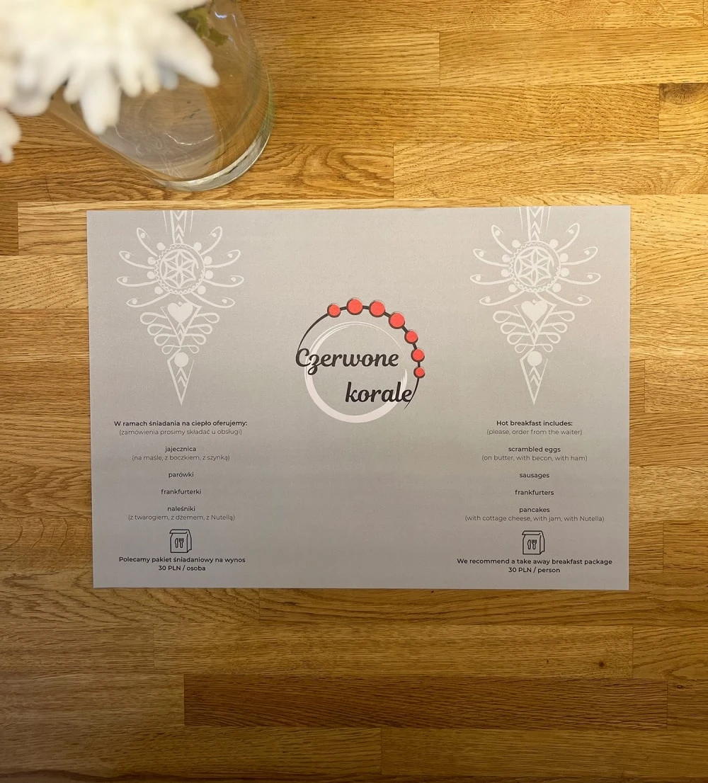 Wymiar podkładki gastronomicznej: 297 mm x 420 mm | Druk pełno-kolorowy