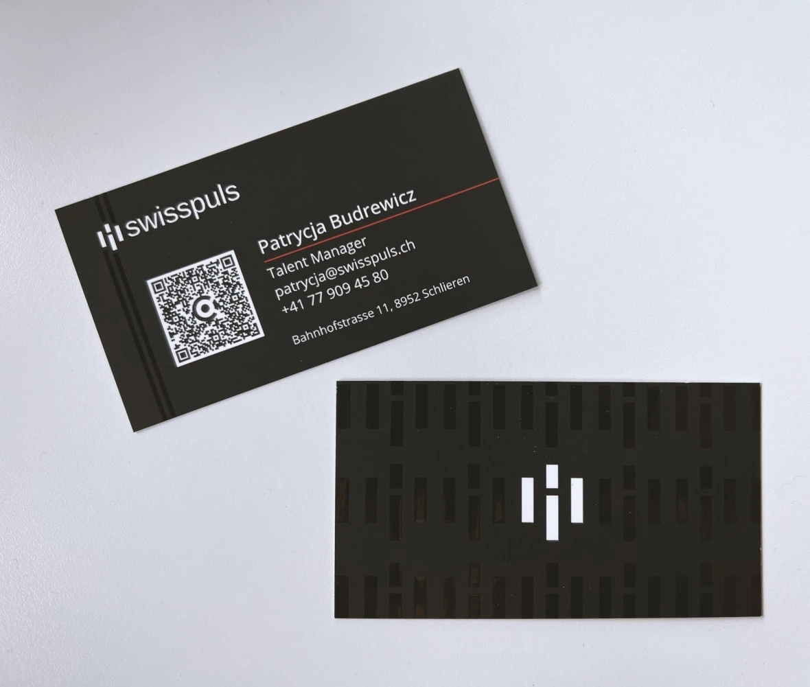 Wizytówki z uv dla Swisspuls2023-05-19T09:54:48+02:00