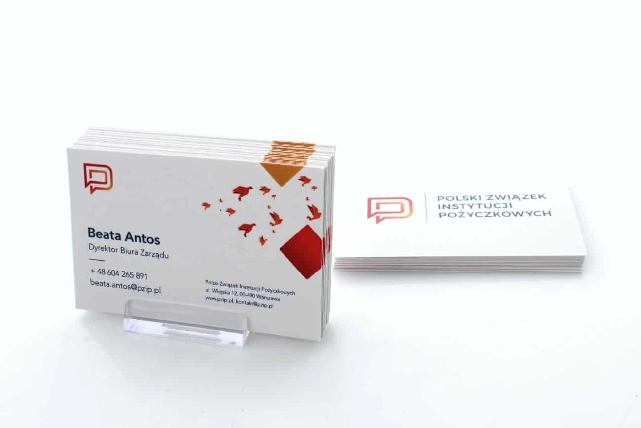 wizytówki z wypukłym lakierem UV dla Polski Związek Instytucji Pożyczkowych