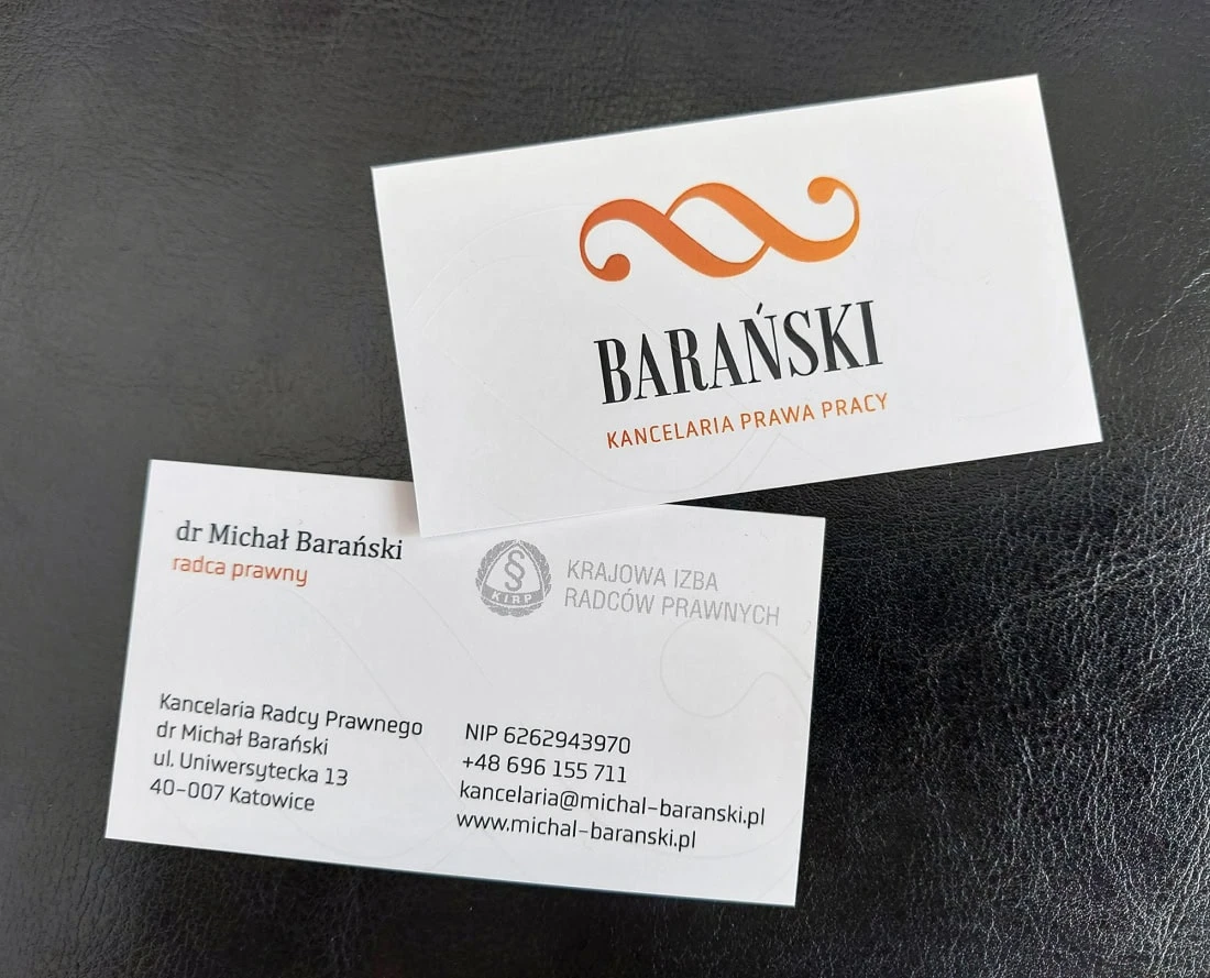 Wizytówki UV dla Kancelaria Prawna Pracy BARAŃSKI2025-02-04T16:28:36+01:00