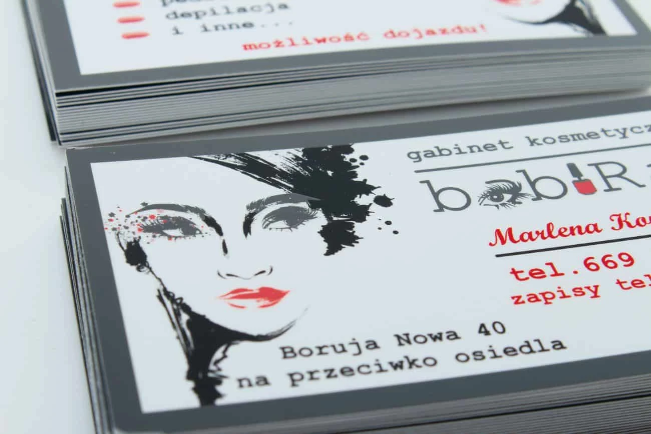 wizytówki z lakierem UV dla gabinetu kosmetycznego BabiRaj